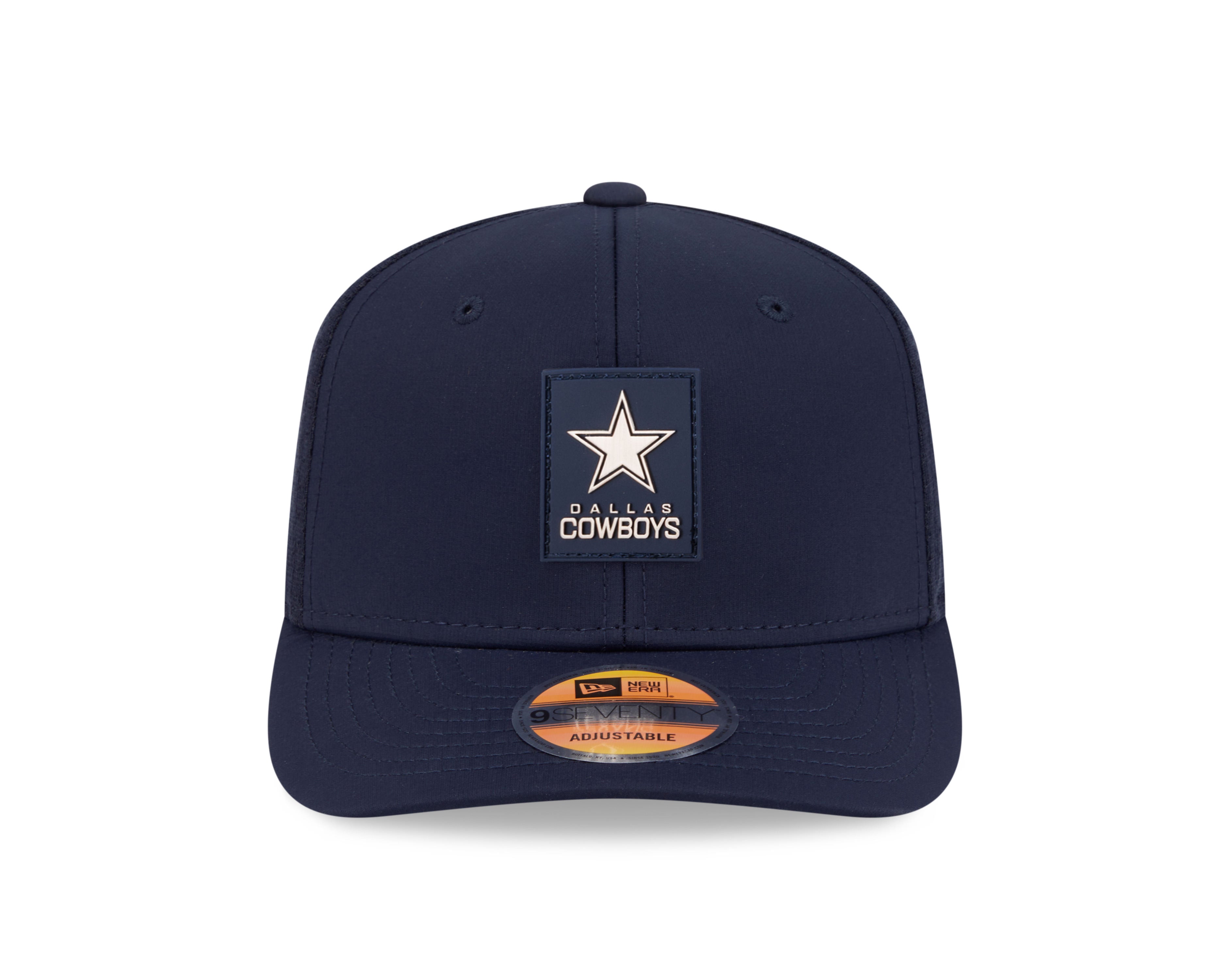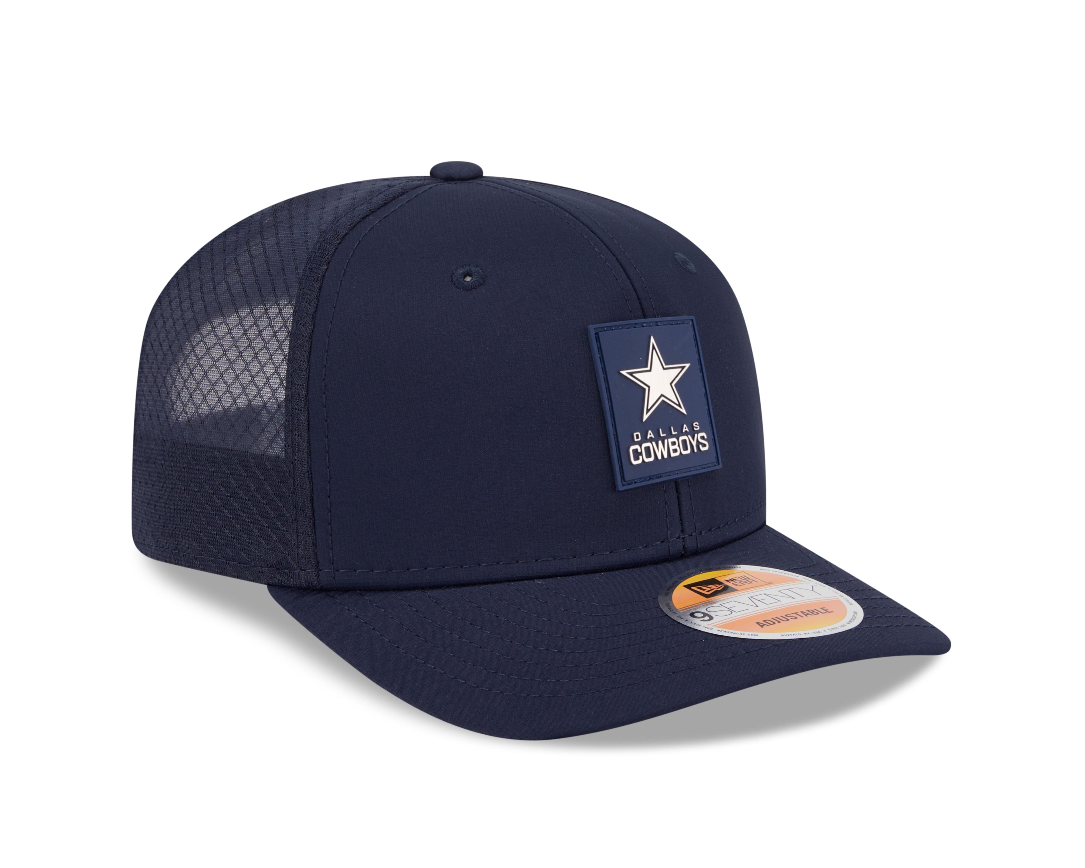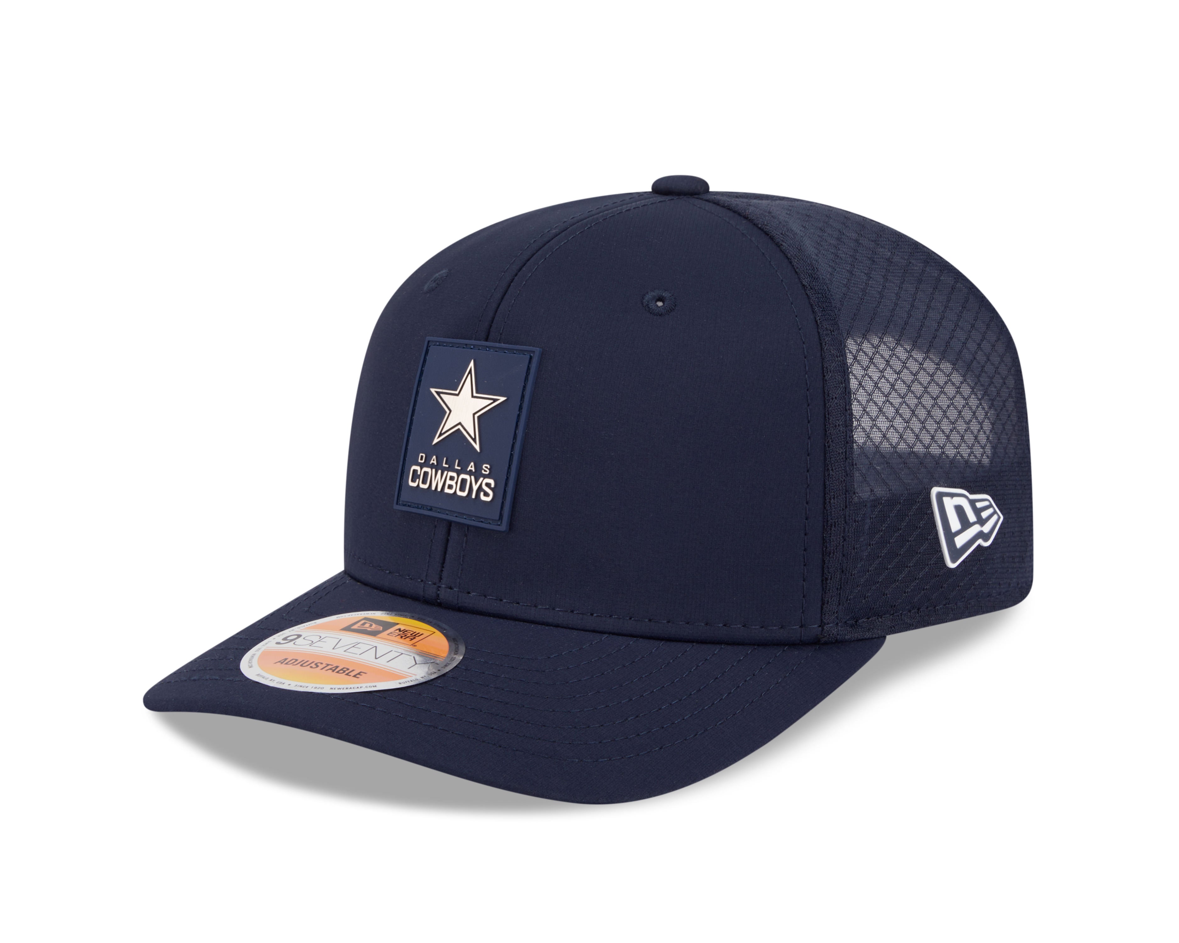 Show your star power with the NFL Dallas Cowboys 2025 Sideline 9SEVENTY Trucker Cap by New Era. This official team cap, as worn on the sidelines during the 2025 season, features a bold rubberized Cowboys star logo patch on the front—delivering a modern edge to a timeless look. The structured crown and curved visor offer classic styling, while breathable mesh back panels and an adjustable snapback closure ensure all-day comfort and a personalized fit. Complete with a moisture-wicking sweatband to keep you cool, this cap is the perfect blend of performance, pride, and Cowboys tradition.