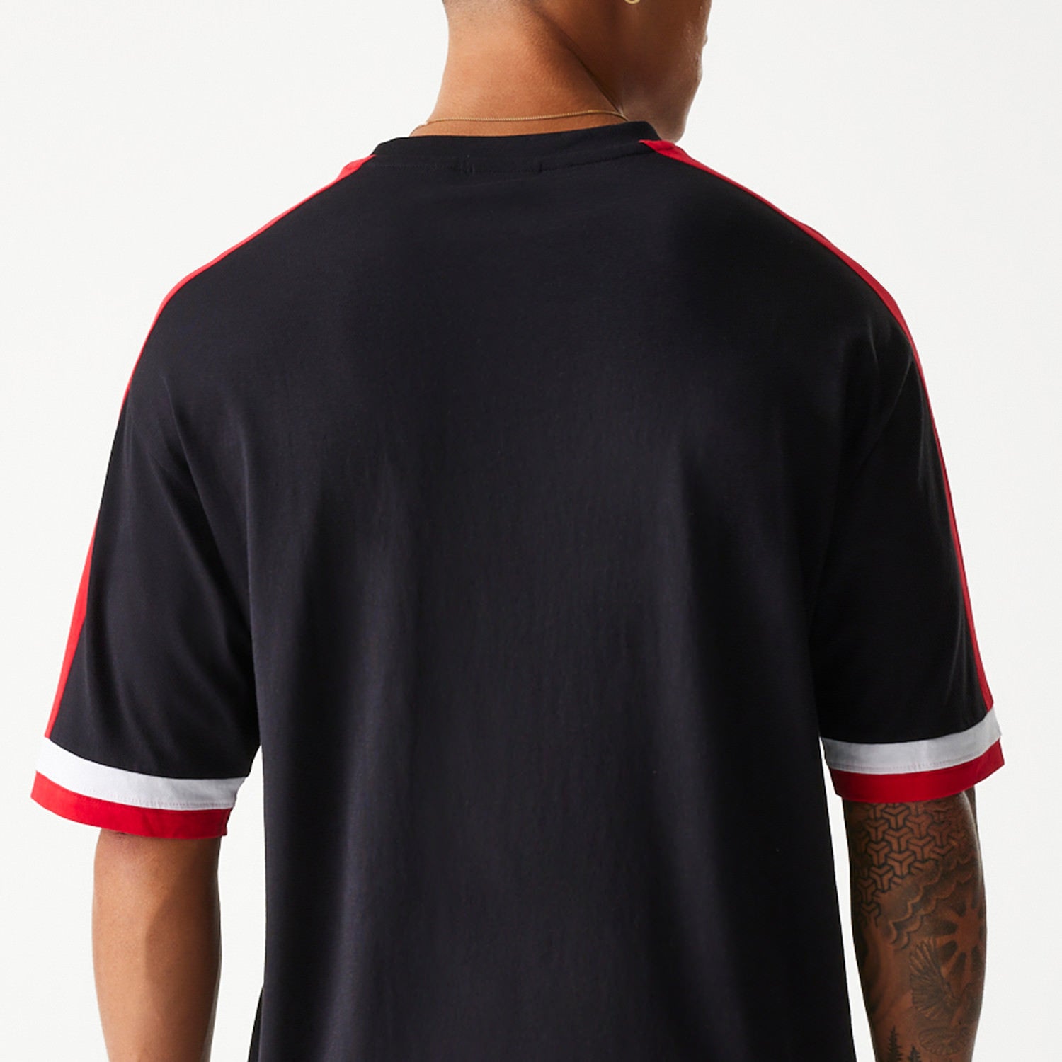 Crafted from soft, breathable fabric, it features a comfortable regular fit with a crew neckline for easy wear. The bold Chicago Bulls wordmark and iconic bull logo sit front and centre, delivering unmistakable team identity. Contrast panel detailing on the sleeves adds a sporty edge, while the New Era flag logo provides a premium finish.
