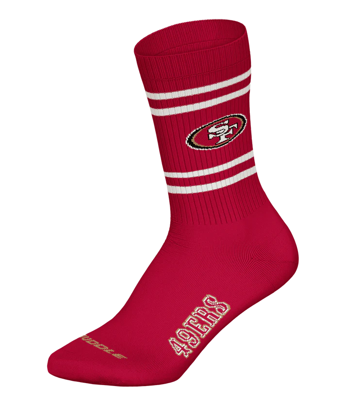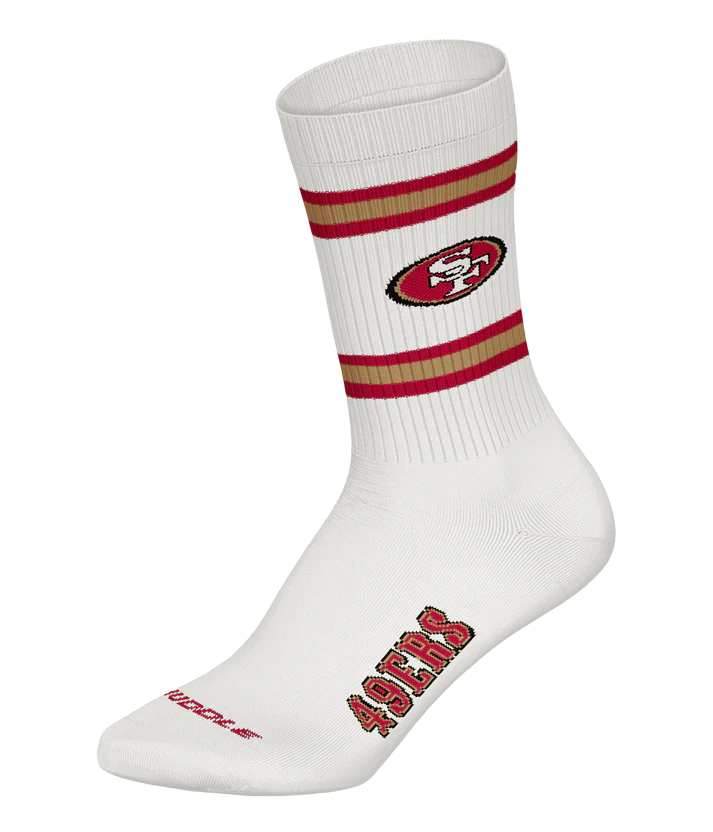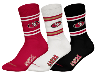 Show your support for the San Francisco 49ers with this [3 Pack] of Crew Socks, perfect for any dedicated fan. Featuring the team's iconic colours and logo, these comfortable socks are crafted from a soft, breathable blend to keep your feet cosy all day. With a ribbed cuff for a secure fit, these socks are ideal for casual wear or game days. The durable design ensures long-lasting quality, making them a great addition to any fan’s wardrobe. Whether you're at the stadium or cheering from home, these socks are the perfect way to showcase your 49ers pride.