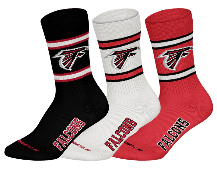 Show your Atlanta Falcons pride from the ground up with the NFL x HUDDLE 3-pack crew socks, made especially for passionate Falcons fans. Whether you’re tailgating at Mercedes-Benz Stadium or cheering from home, these socks deliver comfort, durability, and undeniable Atlanta spirit.