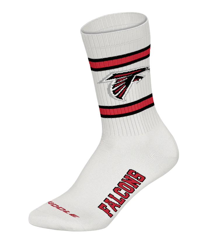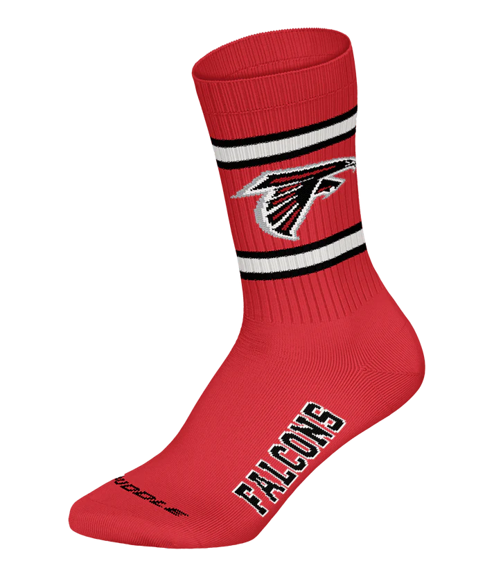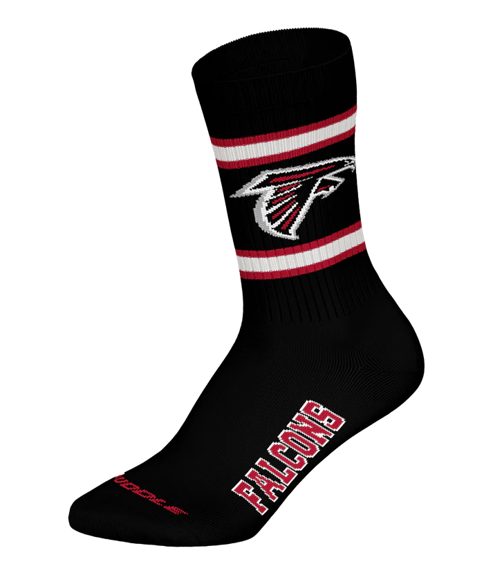 Crafted from a soft, breathable cotton blend and cushioned for all-day comfort, each pair features the embroidered Falcons logo in red, black, and white—a powerful symbol of your loyalty to the Dirty Birds.