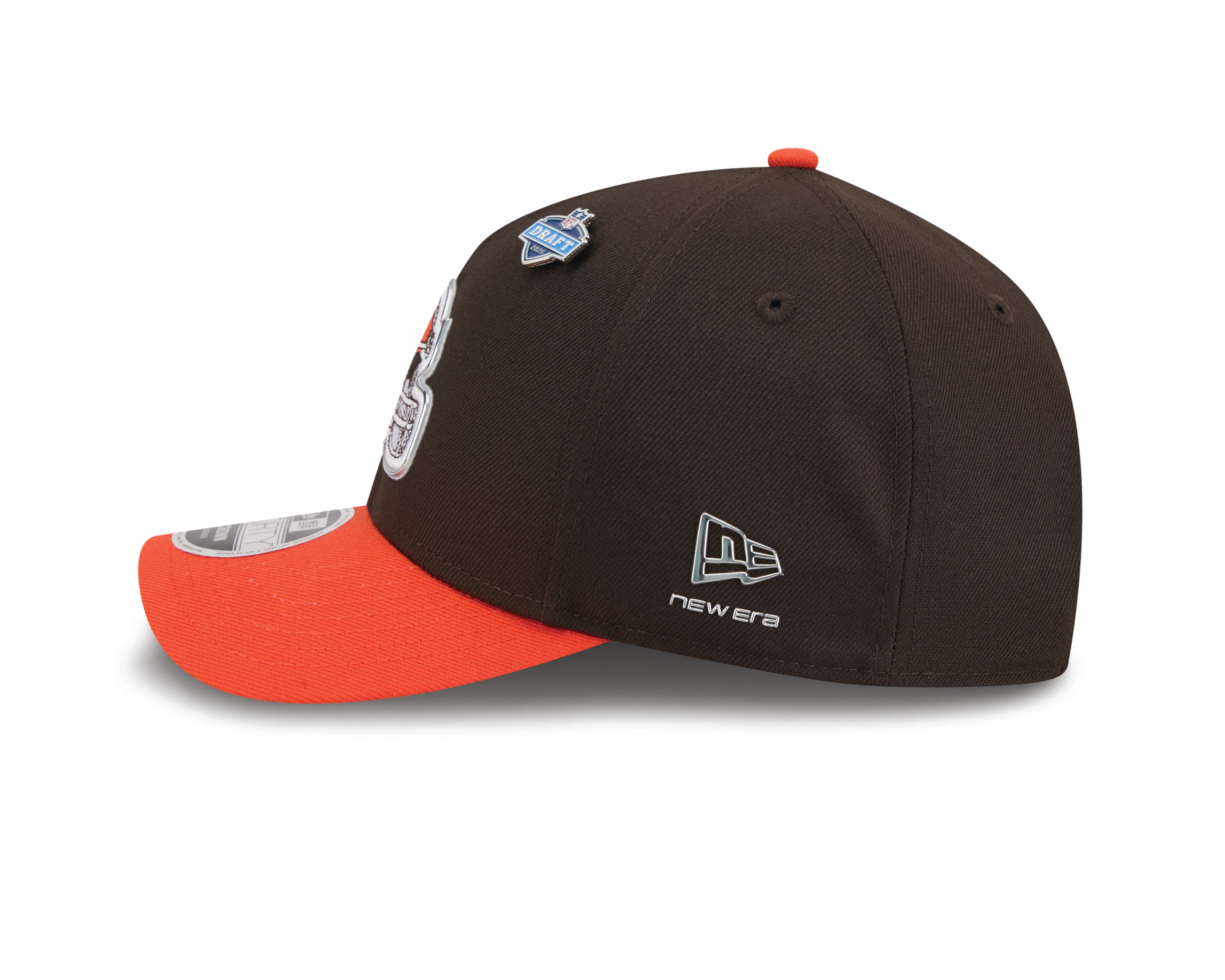 Rep Cleveland Browns pride with the Official 2026 NFL Draft 9Forty MCrown Adjustable Cap by New Era. Styled in signature brown and orange colours with a bold embroidered team logo, this cap delivers a sharp, modern look with authentic draft detailing. A structured mid crown and curved visor create a classic silhouette, while the adjustable snapback features a team wordmark for added detail and fit. The inside is finished with a team-themed lining and undervisor graphic for a premium feel, alongside a metallic-look NFL shield to the rear and New Era flag to the side. Built for Dawg Pound and everyday wear alike.