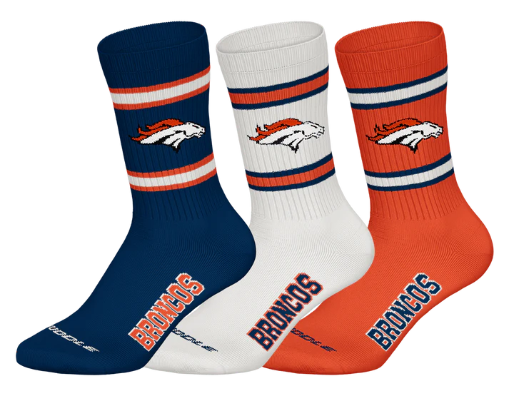 Show your Denver Broncos pride from the ground up with the NFL x HUDDLE 3-pack crew socks, made especially for passionate Broncos fans. Whether you’re tailgating at Empower Field at Mile High or cheering from home, these socks deliver comfort, durability, and undeniable Denver spirit.