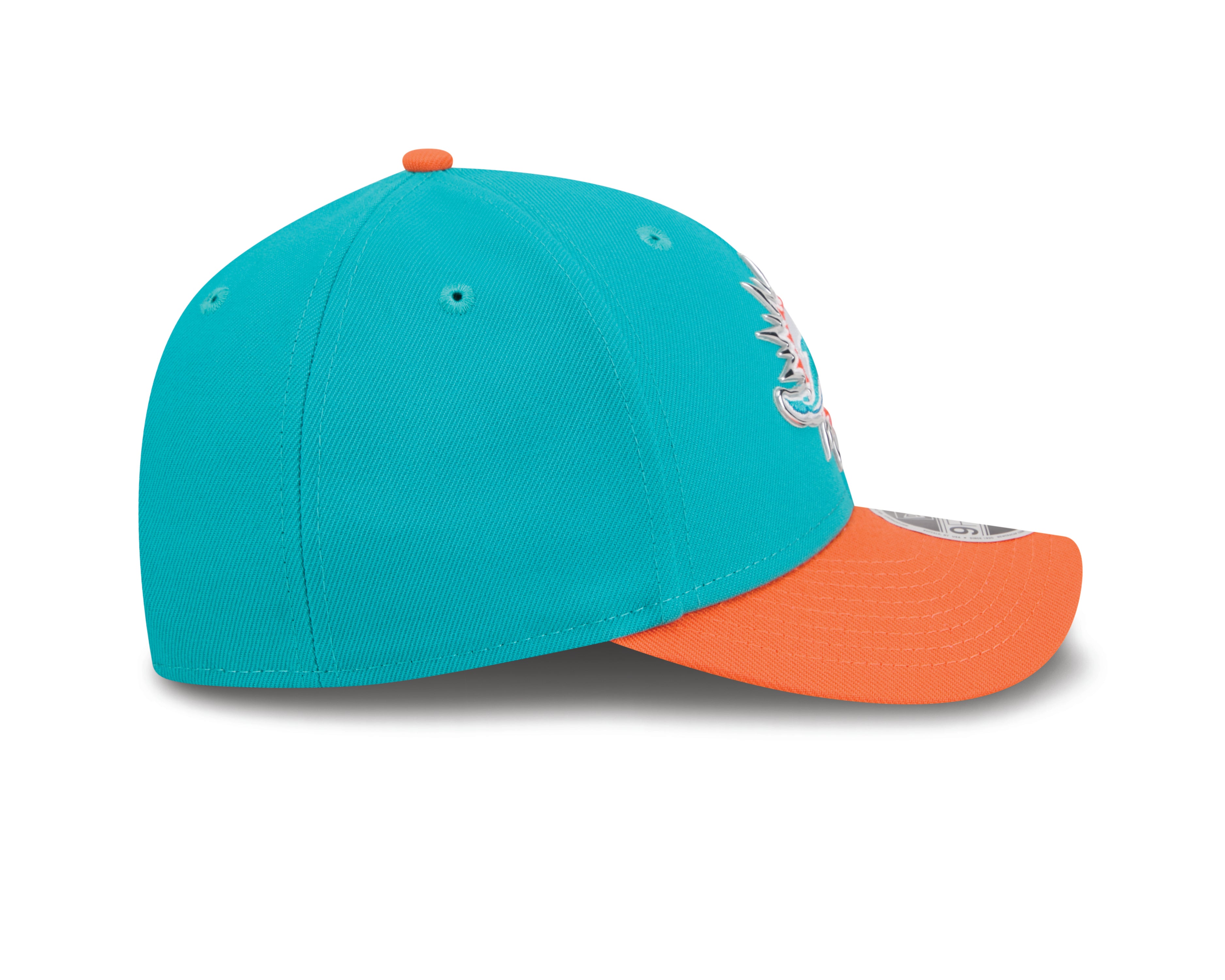 Rep Miami Dolphins pride with the Official 2026 NFL Draft 9Forty MCrown Adjustable Cap by New Era. Styled in signature aqua and orange colours with a bold embroidered team logo, this cap delivers a sharp, modern look with authentic draft detailing. A structured mid crown and curved visor create a classic silhouette, while the adjustable snapback features a team wordmark for added detail and fit. The inside is finished with a team-themed lining and undervisor graphic for a premium feel, alongside a metallic-look NFL shield to the rear and New Era flag to the side. Built for Fins Up and everyday wear alike.