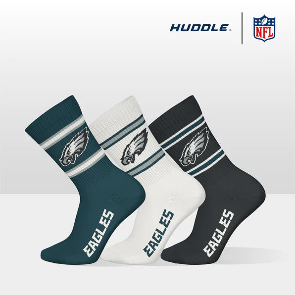 Completing the bundle is a 3-pack of Eagles crew socks, featuring team colours and Eagles branding. Soft, comfortable, and perfect for everyday wear, these socks are ideal for game day outfits, workouts, or adding a subtle touch of team spirit to your daily look.
