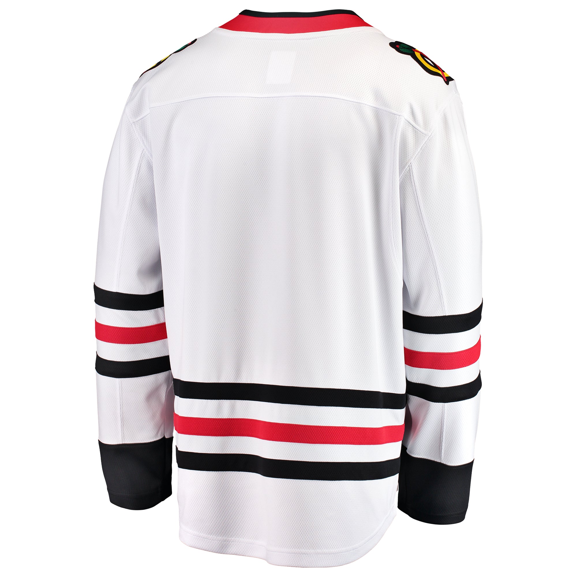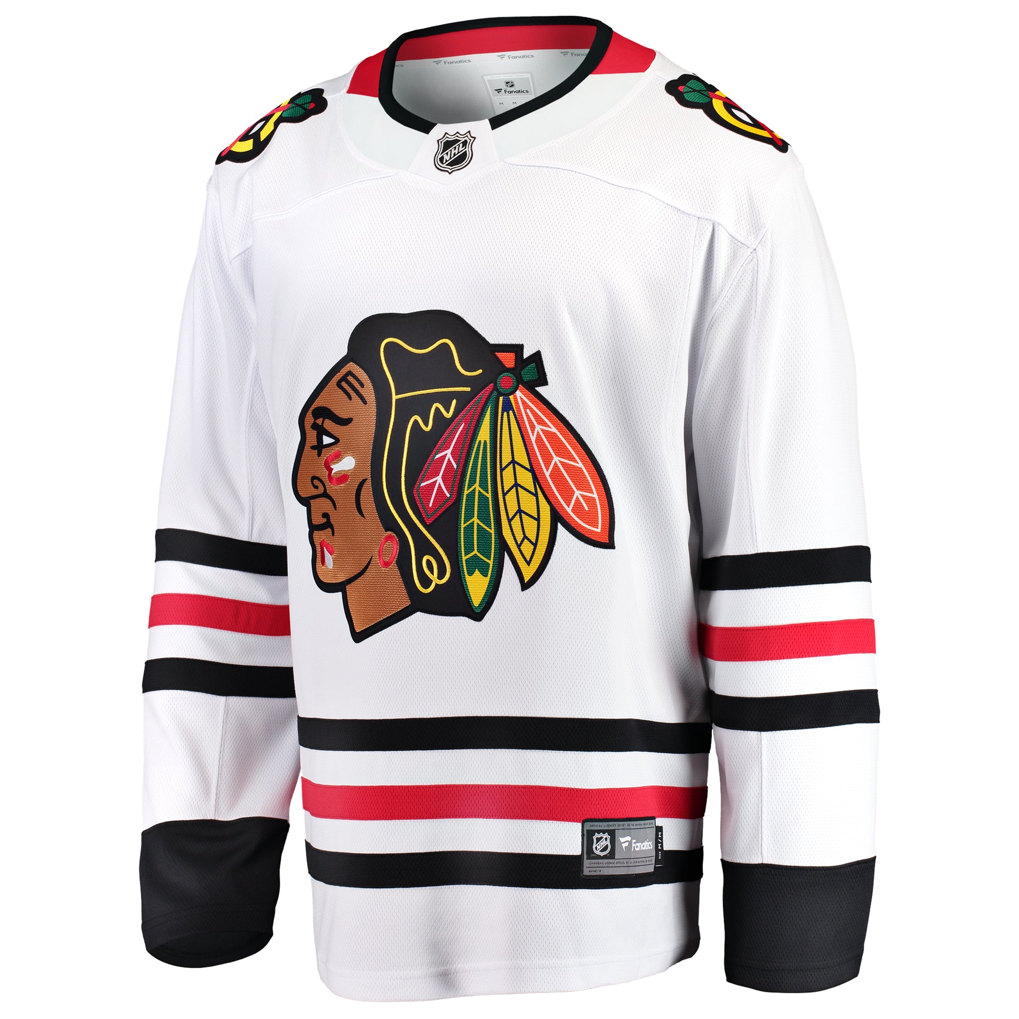 Hit the road in classic NHL style with the Chicago Blackhawks White Road Breakaway Jersey by Fanatics. This fan-ready design features the team’s iconic crest prominently displayed on the front, complemented by bold striping and authentic detailing for a true game-day look. Built with Fanatics’ Breakaway construction, the jersey offers a relaxed, comfortable fit that’s perfect for cheering in the stands or watching from home. Lightweight, breathable fabric keeps you comfortable from puck drop to the final horn, while officially licensed graphics showcase your unwavering Blackhawks pride.