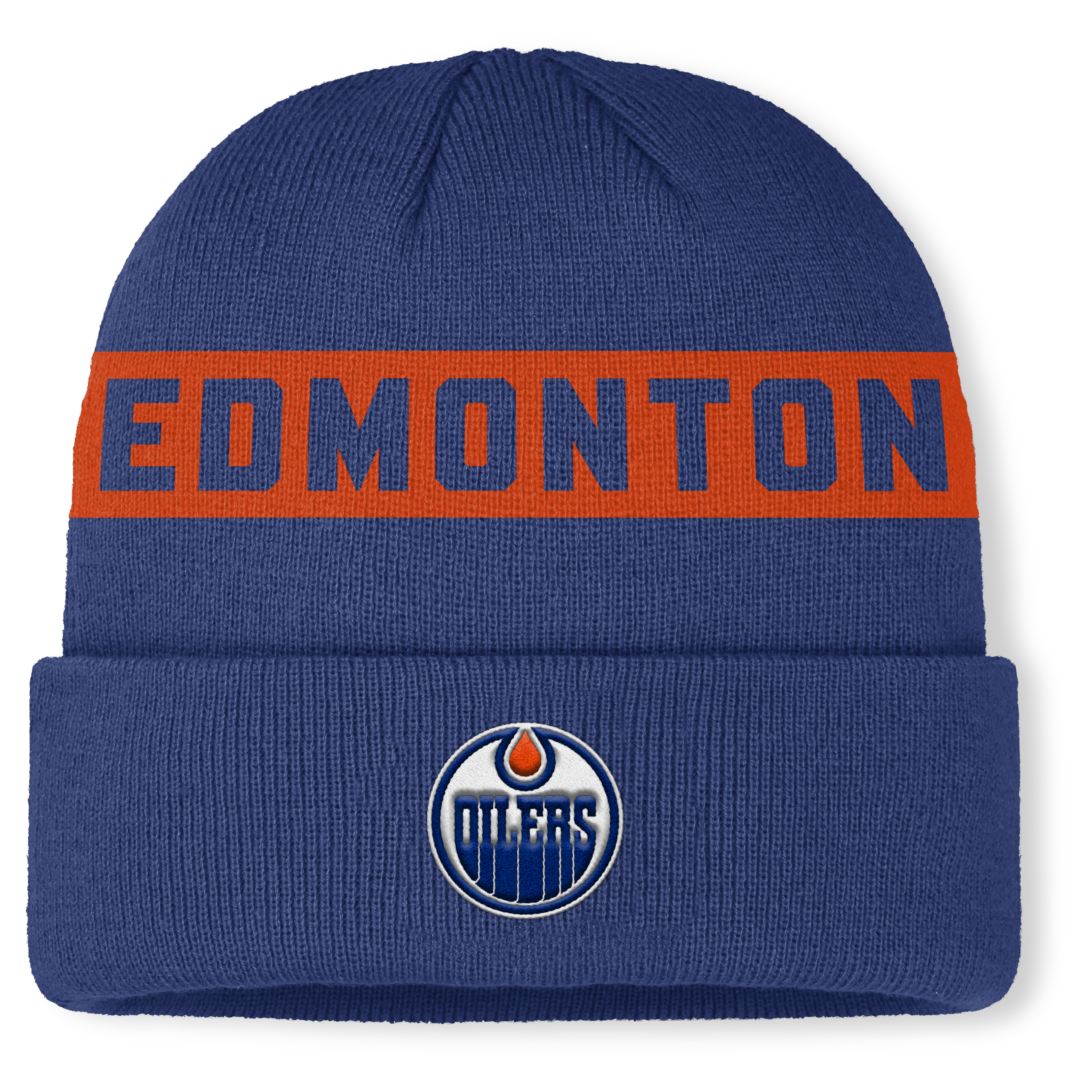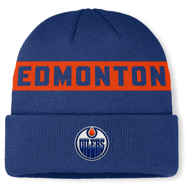 Stay warm while backing your team in the Edmonton Oilers Authentic Pro Beanie Knit. Designed in official team colours, this bold blue cuffed beanie features a striking orange stripe with EDMONTON detailing across the crown and a premium embroidered Oilers crest on the front.
