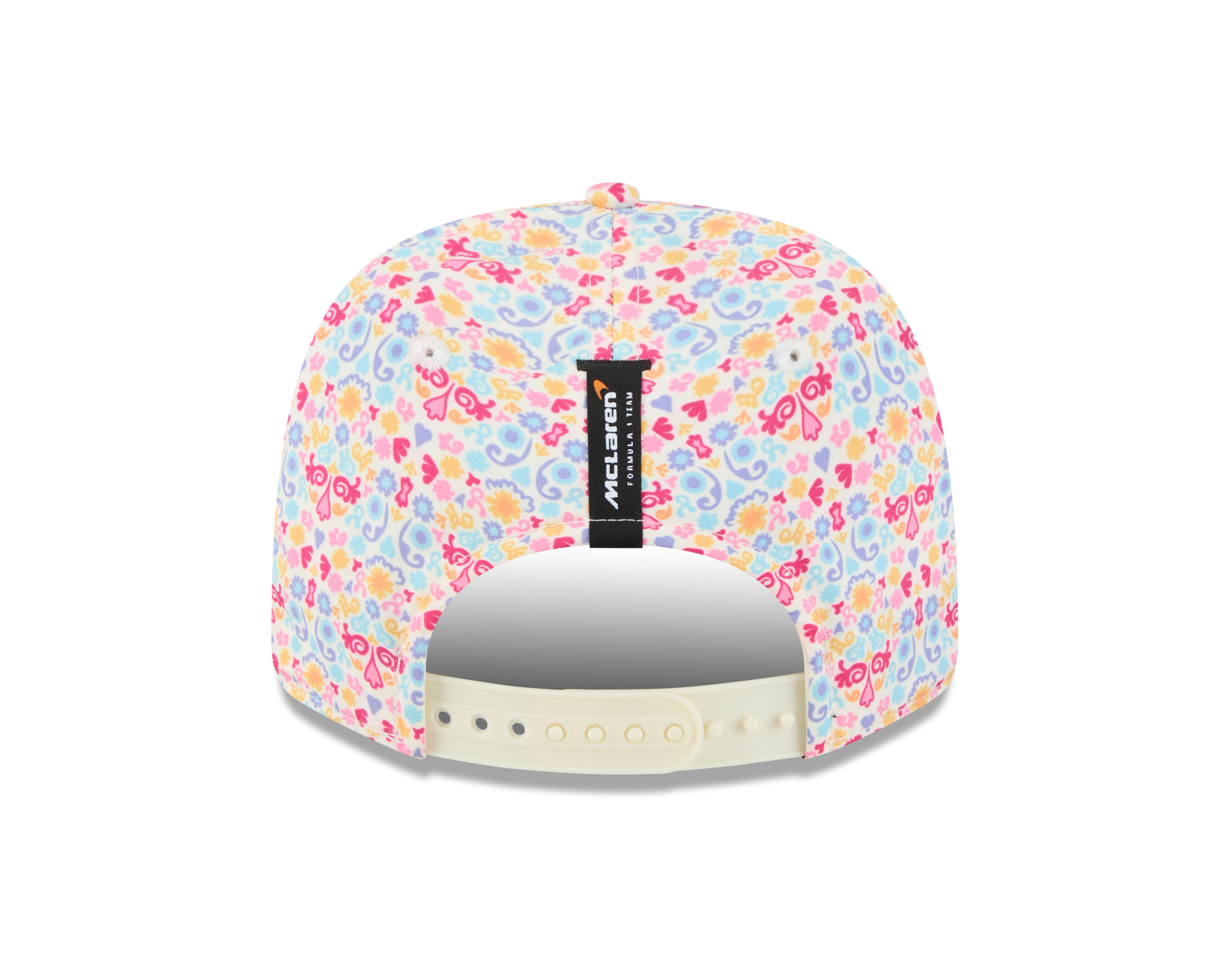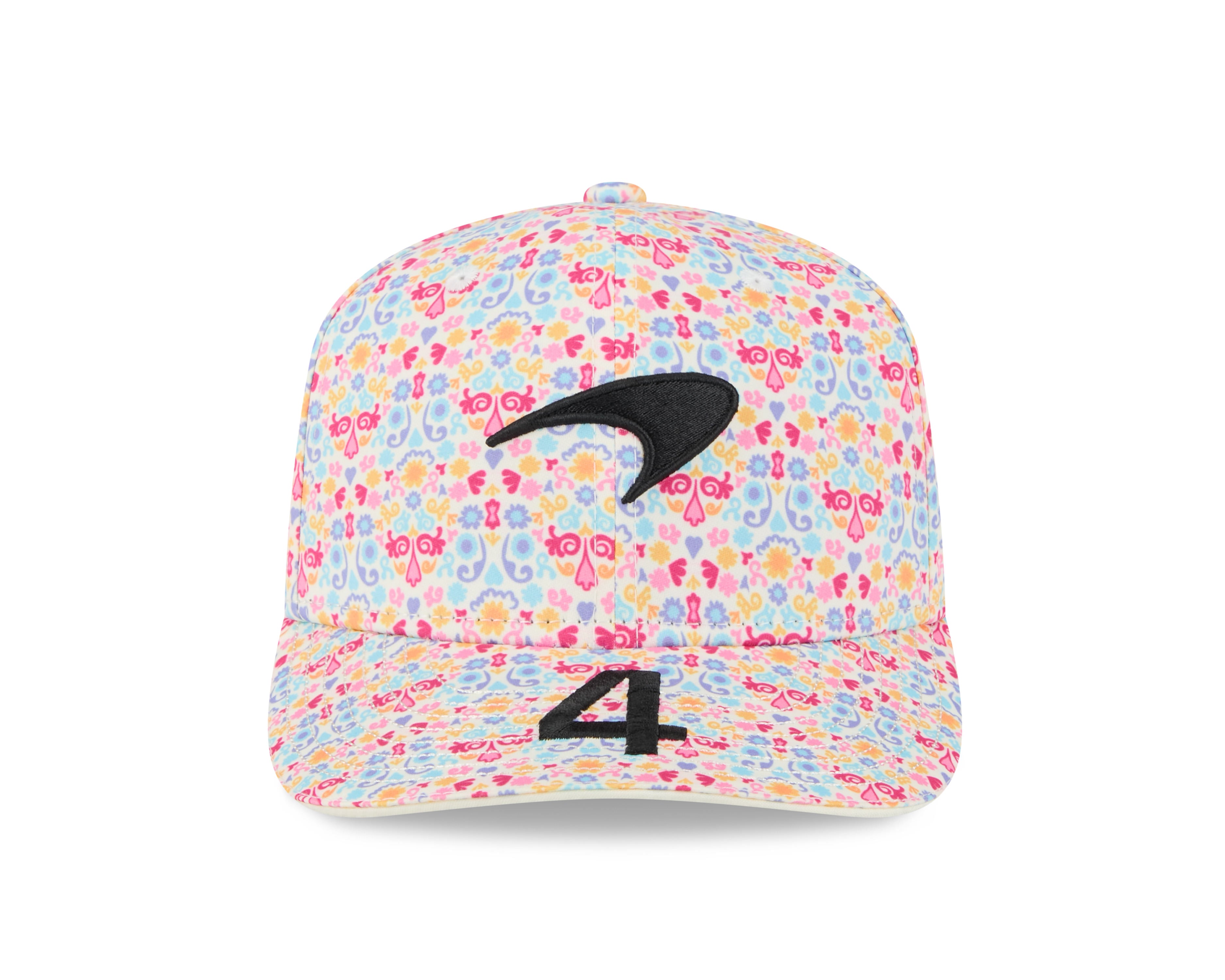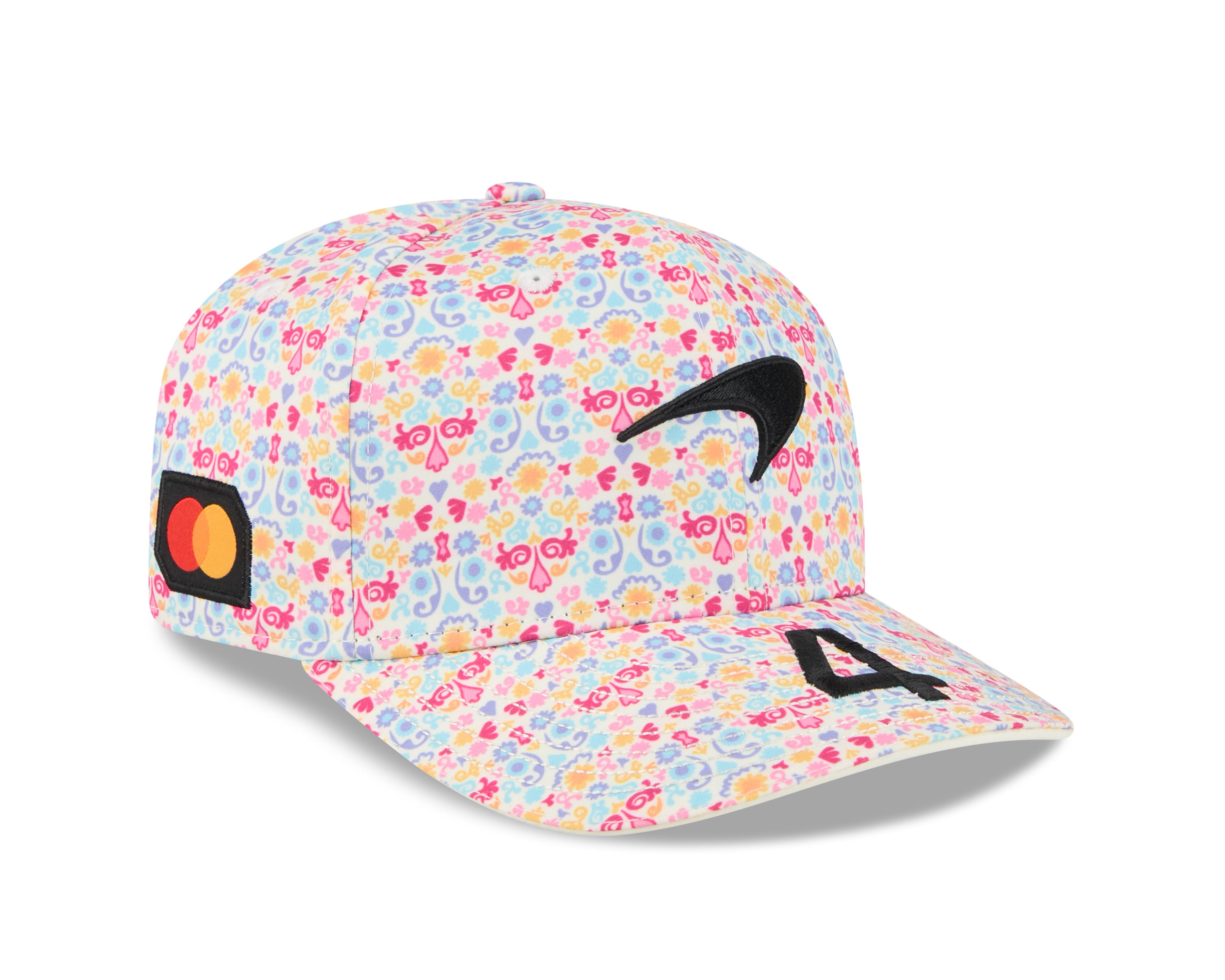 Gear up like a true McLaren fan with the Lando Norris Mexico Race Special 9SEVENTY Stretch Snap Cap! Featuring the iconic McLaren Speedmark front logo, Lando’s number 4 atop the visor, and his initials under the brim, this cap screams racing pedigree. With a Mastercard side patch, all-over crown print, and a sleek black undervisor, it’s as stylish off-track as it is on. Stretchy, comfy, and finished with a curved visor and embroidered New Era flag—this cap is your fast lane to fan chic.