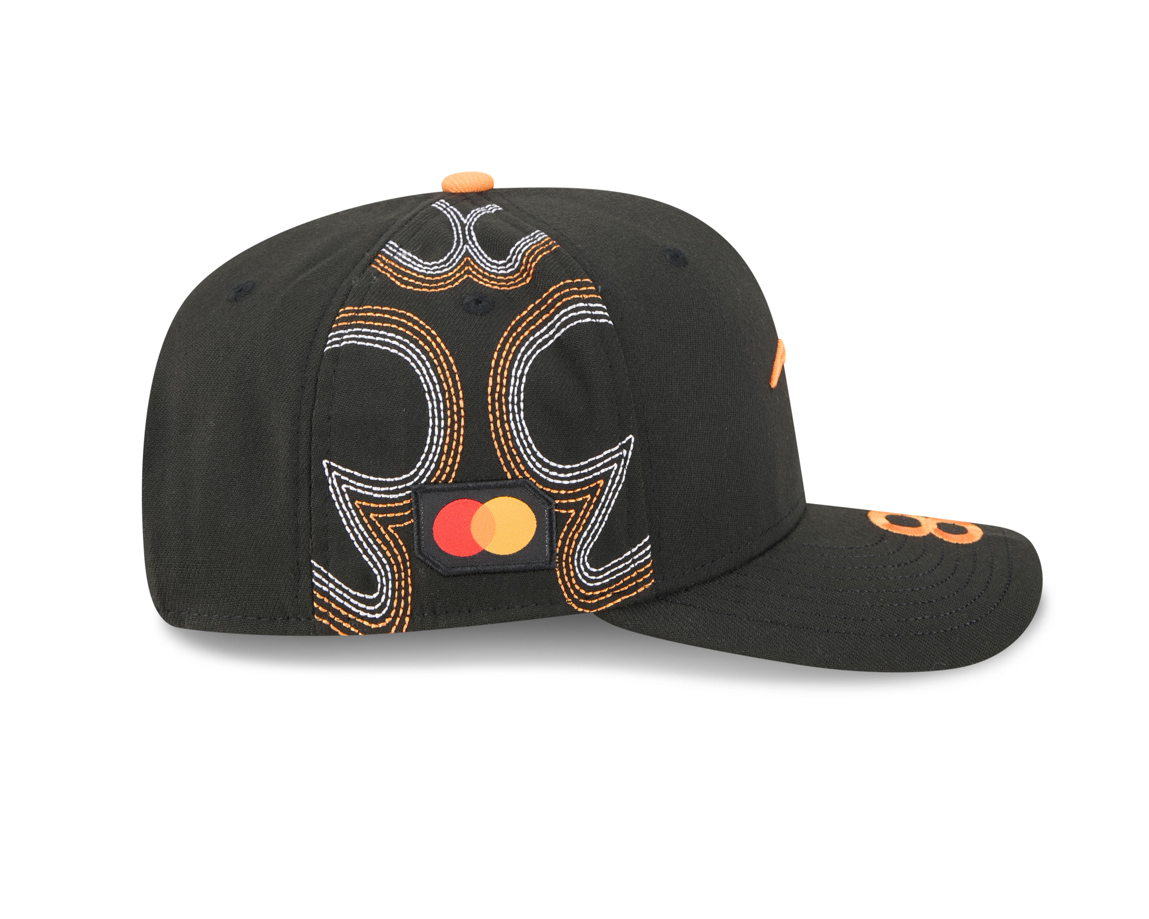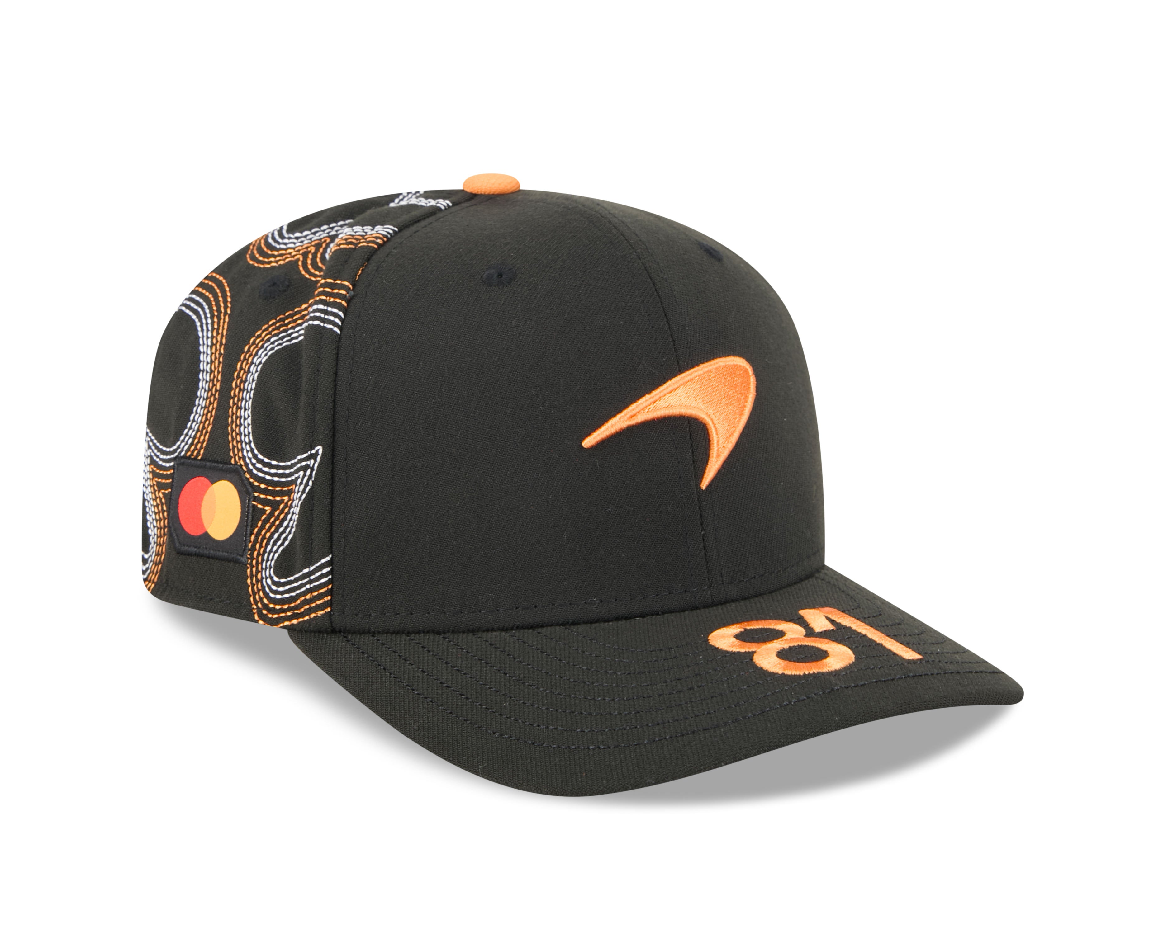Celebrate the thrill of Austin with the Oscar Piastri Mexico Race Special 9SEVENTY Stretch Snap Cap! Dressed in sleek black with patterned mid panels, it features the McLaren Speedmark front logo, Mastercard side patch, and Oscar’s number 81 proudly atop the visor. His initials under the brim and a woven McLaren Racing label on the rear arch add authentic fan flair, while the New Era Flag completes the look. With a structured crown, curved visor, and stretch snap fit, this cap is comfy, stylish, and ready for race day—on or off the track.