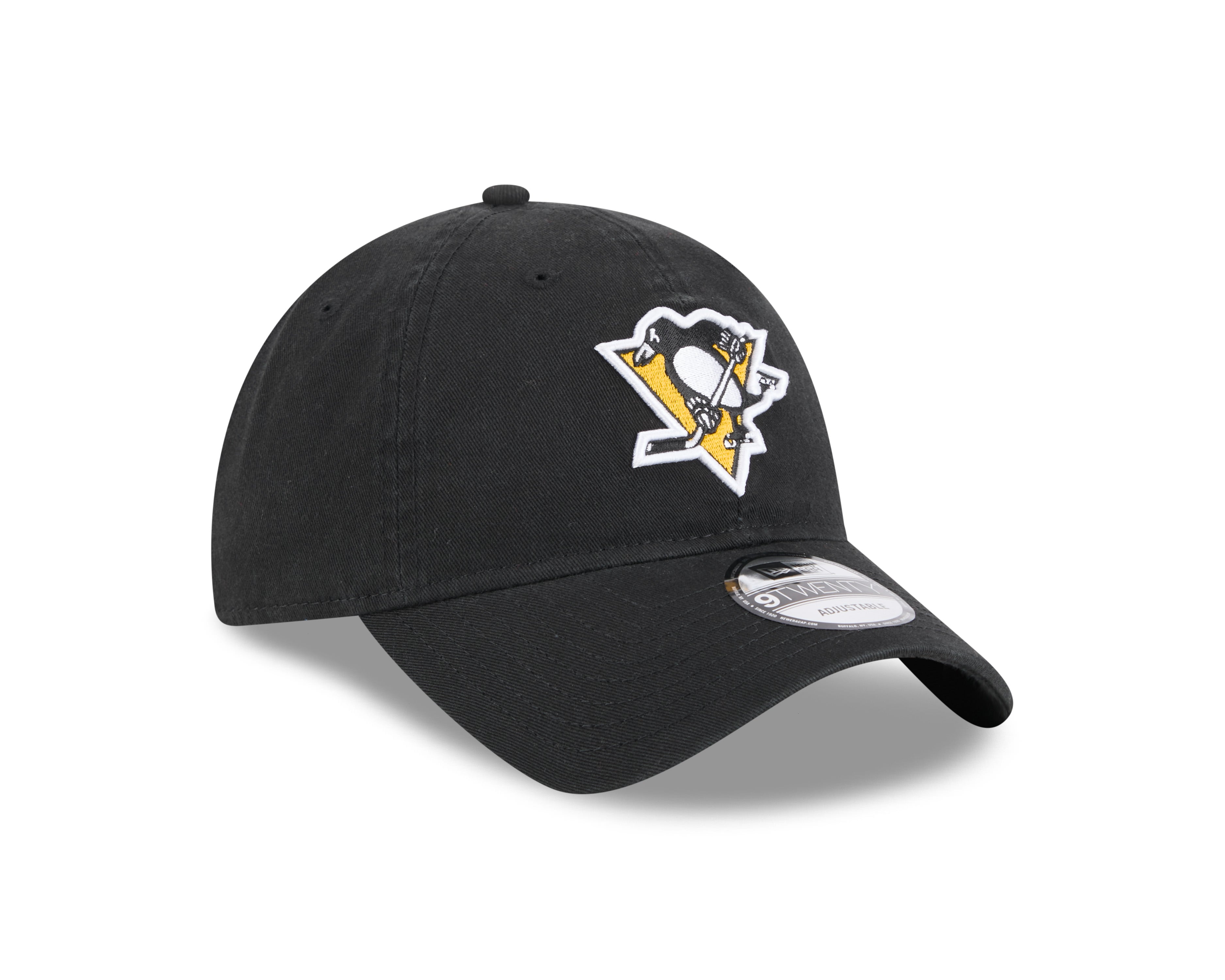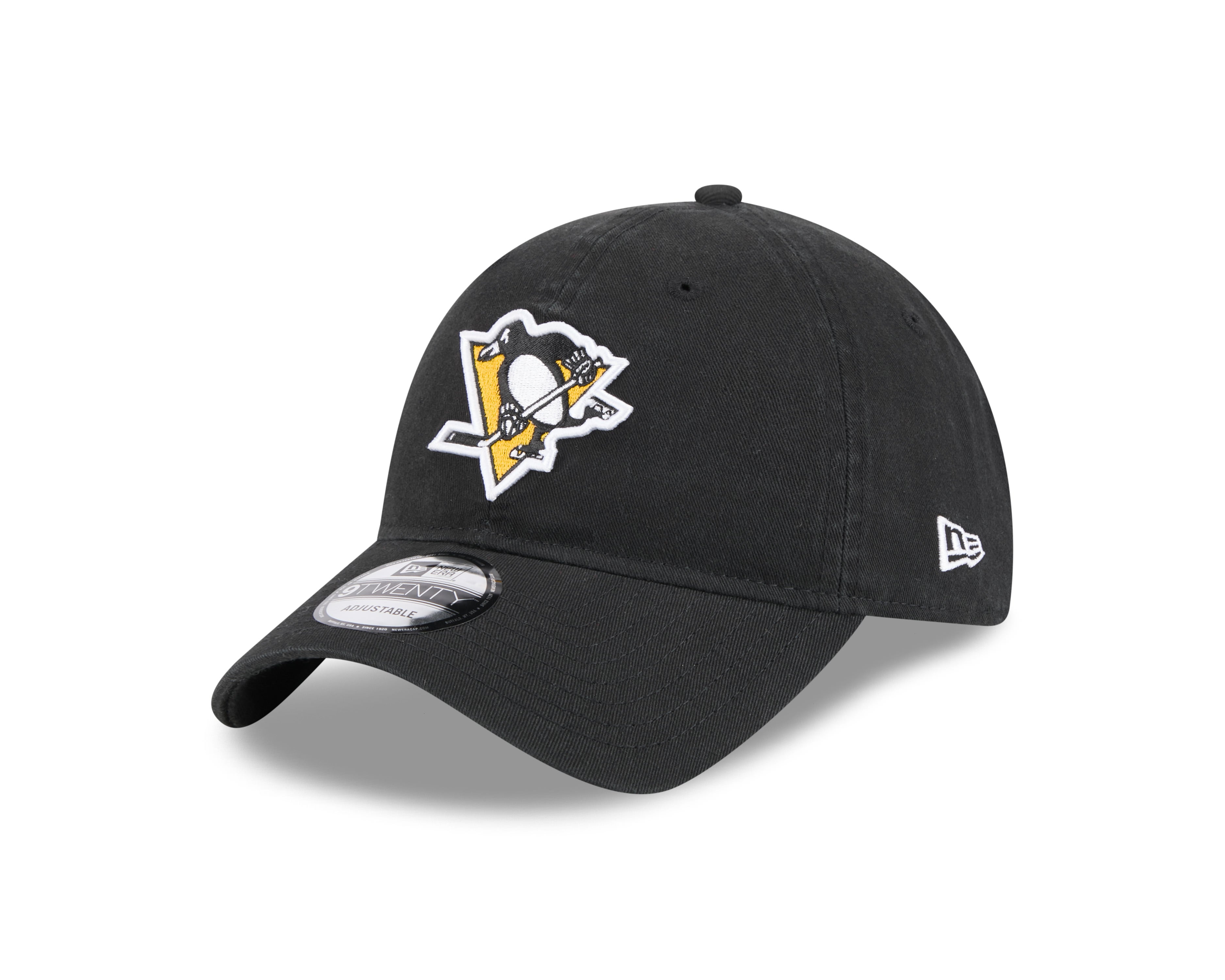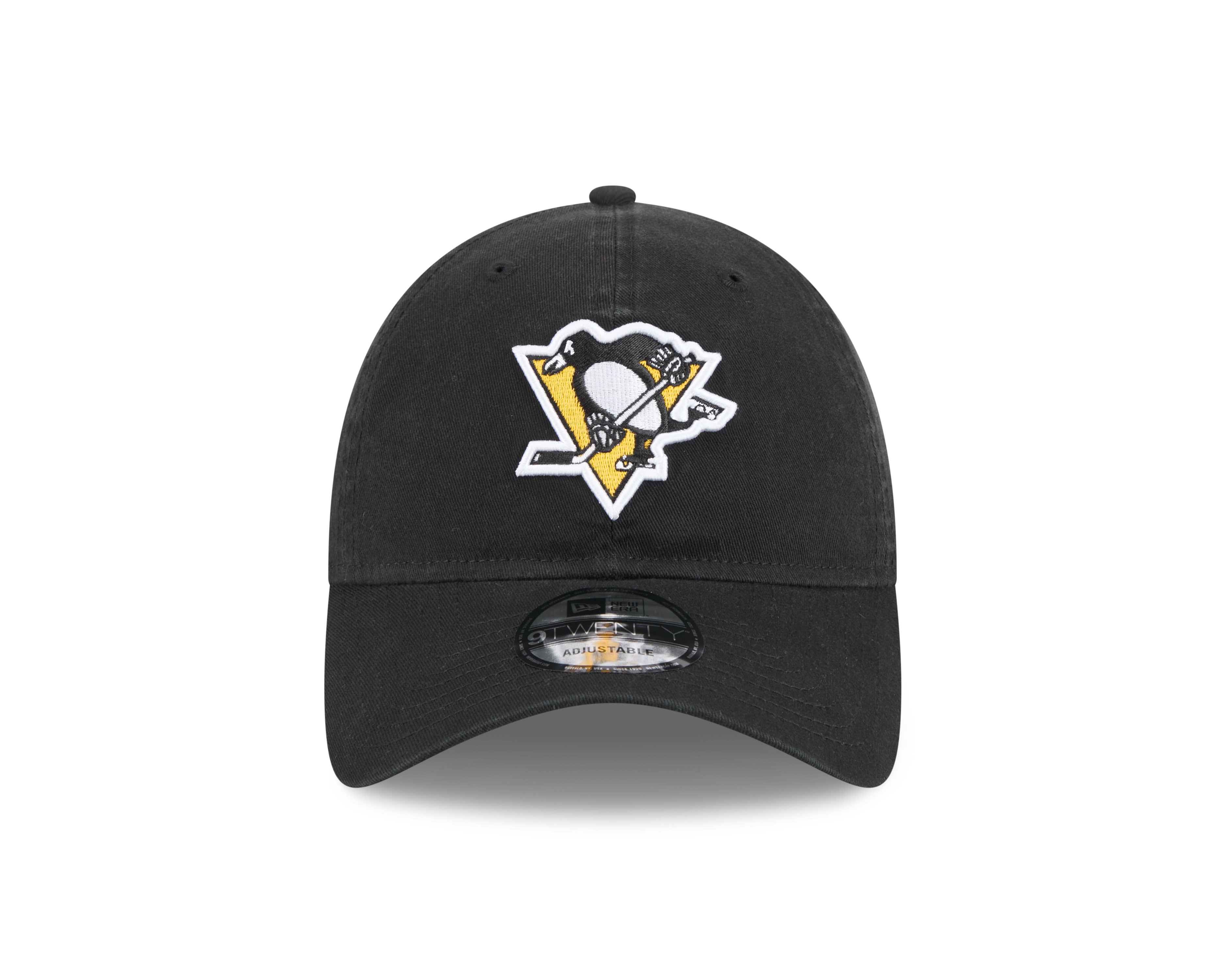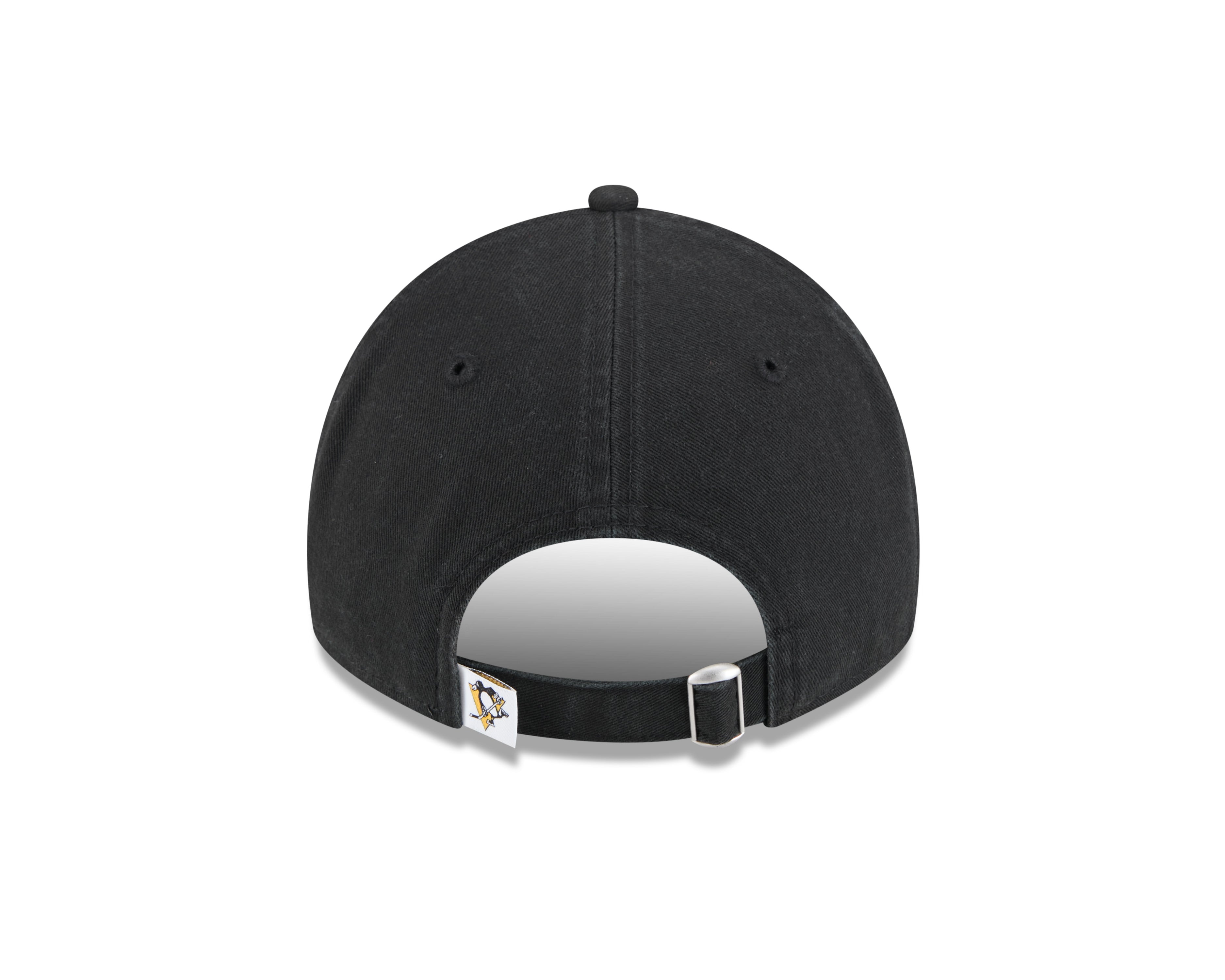 Show your Penguins pride with this official Pittsburgh Penguins 9Twenty cap in striking team black. Featuring the iconic Penguins logo embroidered on the front and a woven team tab on the rear, this New Era classic combines authentic style with comfort. The unstructured crown and curved visor deliver a relaxed fit, while the adjustable strapback ensures a perfect fit for any fan. Crafted from 100% cotton for breathability and durability. Perfect for game day or everyday wear.