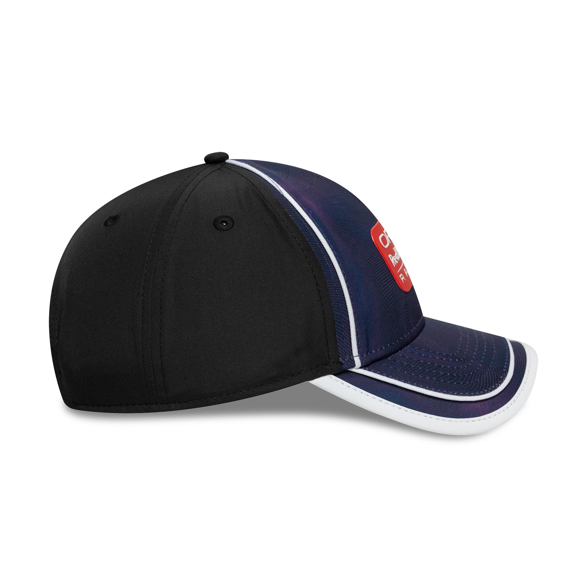 Own the podium in this aggressive Red Bull Racing 9FORTY A-Frame cap. Jet black polyester construction delivers a sleek, modern aesthetic, while the Oracle Red Bull Racing logo commands attention on the front. The patterned crown and visor top feature sharp piping detail for added edge, complemented by the white-trimmed curved visor and black undervisor. New Era Flag embroidery marks the left side. Structured A-Frame crown with snapback closure ensures a locked-in fit. Engineered for champions who demand intensity.