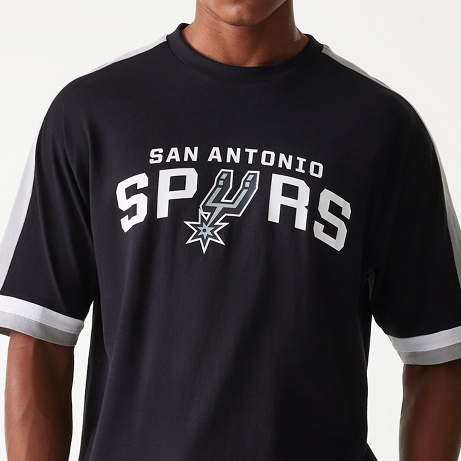 Made from soft, breathable fabric, this tee offers a comfortable regular fit with a classic crew neckline. The front features the bold San Antonio Spurs wordmark and logo, while contrast panel detailing on the sleeves adds a subtle sporty edge. A discreet New Era flag logo completes the look with a premium touch.