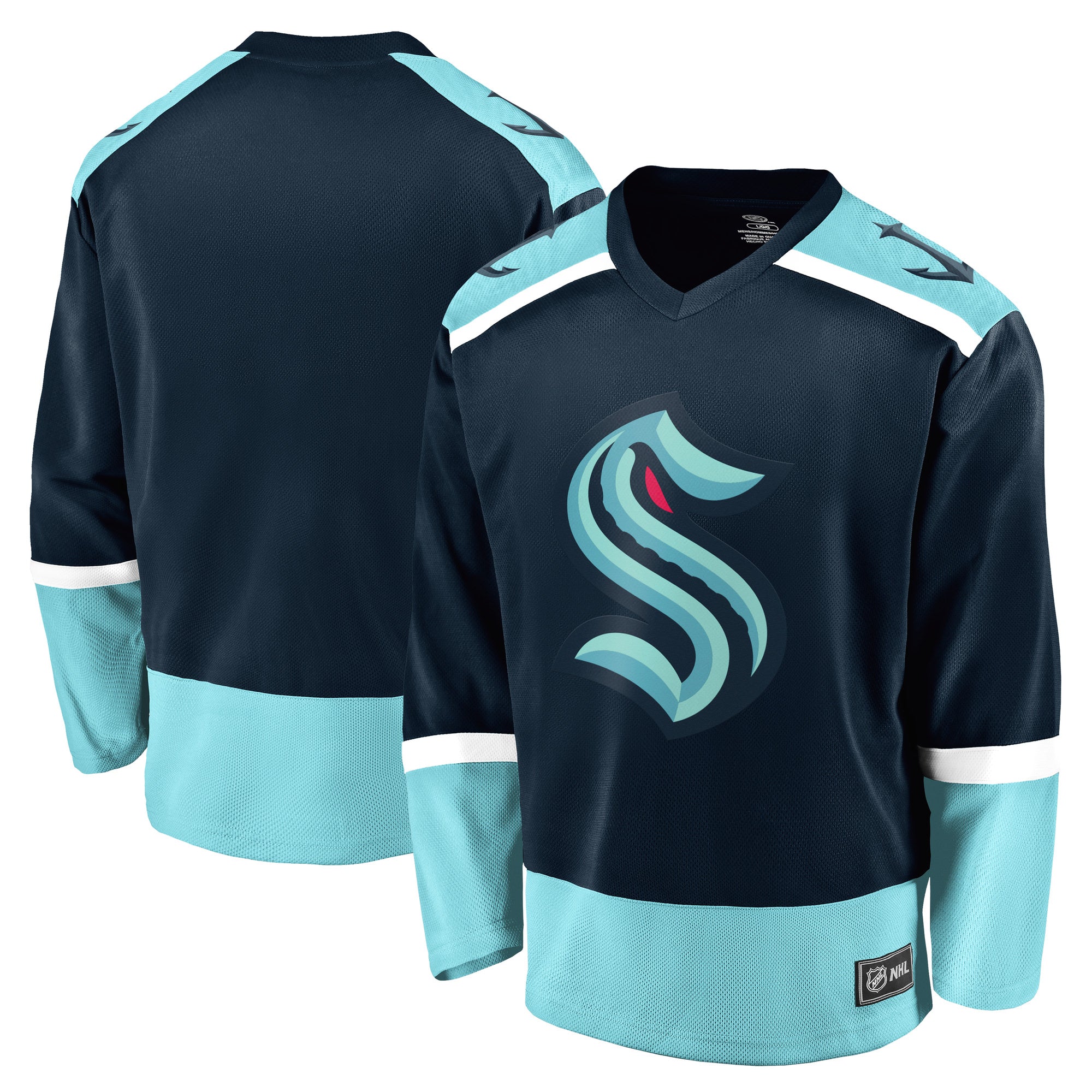 Release the Kraken in this Seattle Kraken Replica Fan Style Jersey by Fanatics. Featuring the striking ‘S’ crest in bold vinyl and deep sea-inspired colours, this design stands out from the crowd. Lightweight, breathable and easy to wear, it’s built for fans who want something a little different while backing Seattle’s newest force.